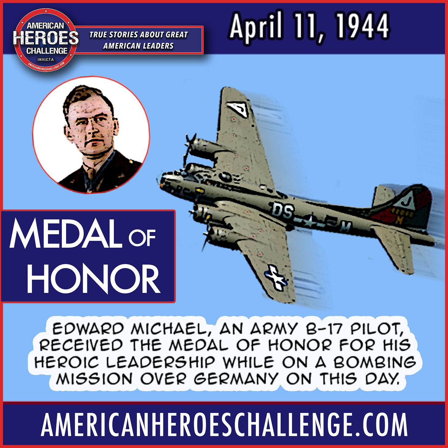 Edward Michael received the Medal of Honor for his heroic leadership over Germany when he refused to abandon his damaged B-17 when he realized that the last crewman to jump had a damaged parachute. Michael successfully landed the burning and damaged plane in allied territory. Honor and remember him!