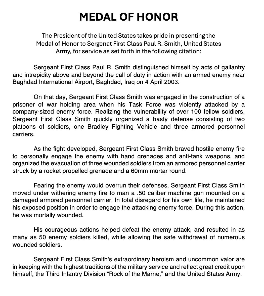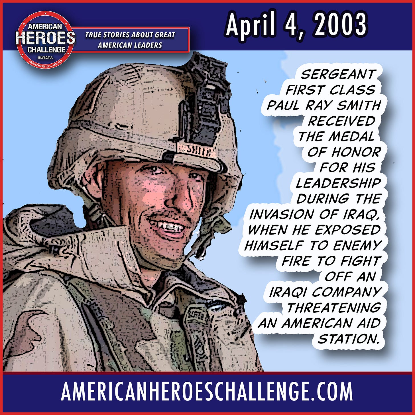 Sergeant First Class Paul Ray Smith earned the Medal of Honor posthumously on this day in Iraq, when he led outnumbered American soldiers against a determined and overwhelming Iraqi force. He was killed while manning a .50 cal in the open, beating back the enemy troops. Honor and remember him!