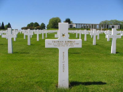 Kimbro’s actions stopped the German advance along that road and slowed their overall momentum. He received the Medal of Honor posthumously and is buried at Henri-Chapelle American Cemetery in Henri-Chapelle, Belgium. Honor and remember him!