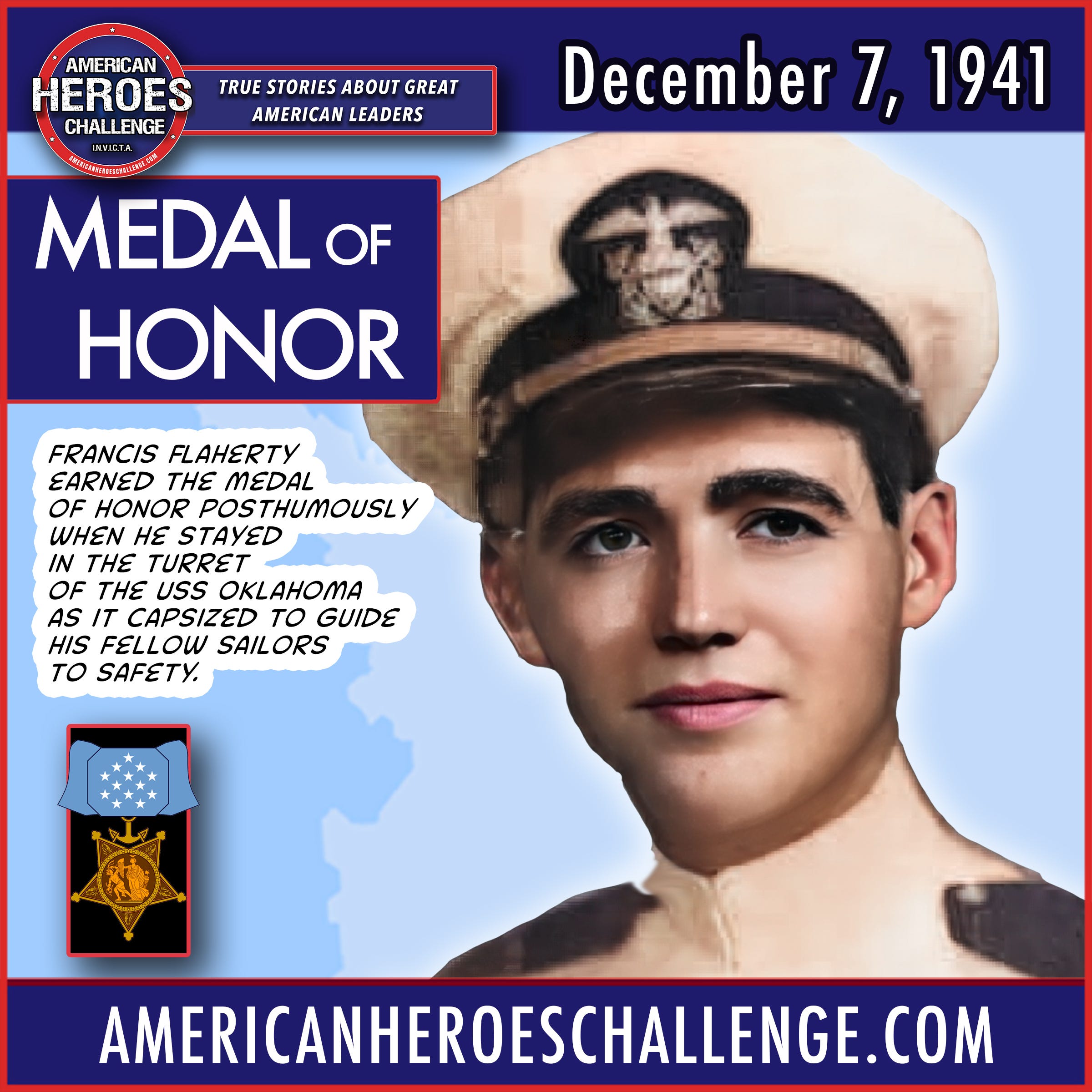 We would do well to honor & remember Francis Flaherty, who gave up his life 83 years & one day ago, staying in the turret of the capsizing USS Oklahoma after the Japanese attack on Pearl Harbor, guiding his fellow sailors to safety, & earning the Medal of Honor posthumously.