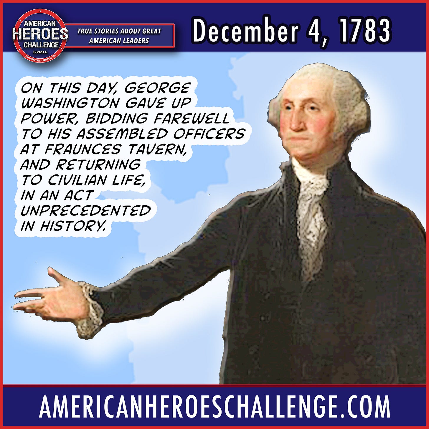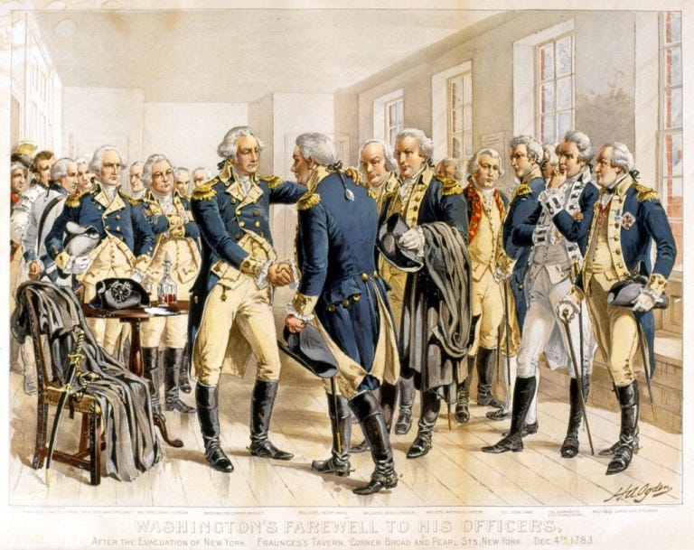 On this day, Washington walked away from power, saying farewell to officers assembled with him at France’s Tavern.
