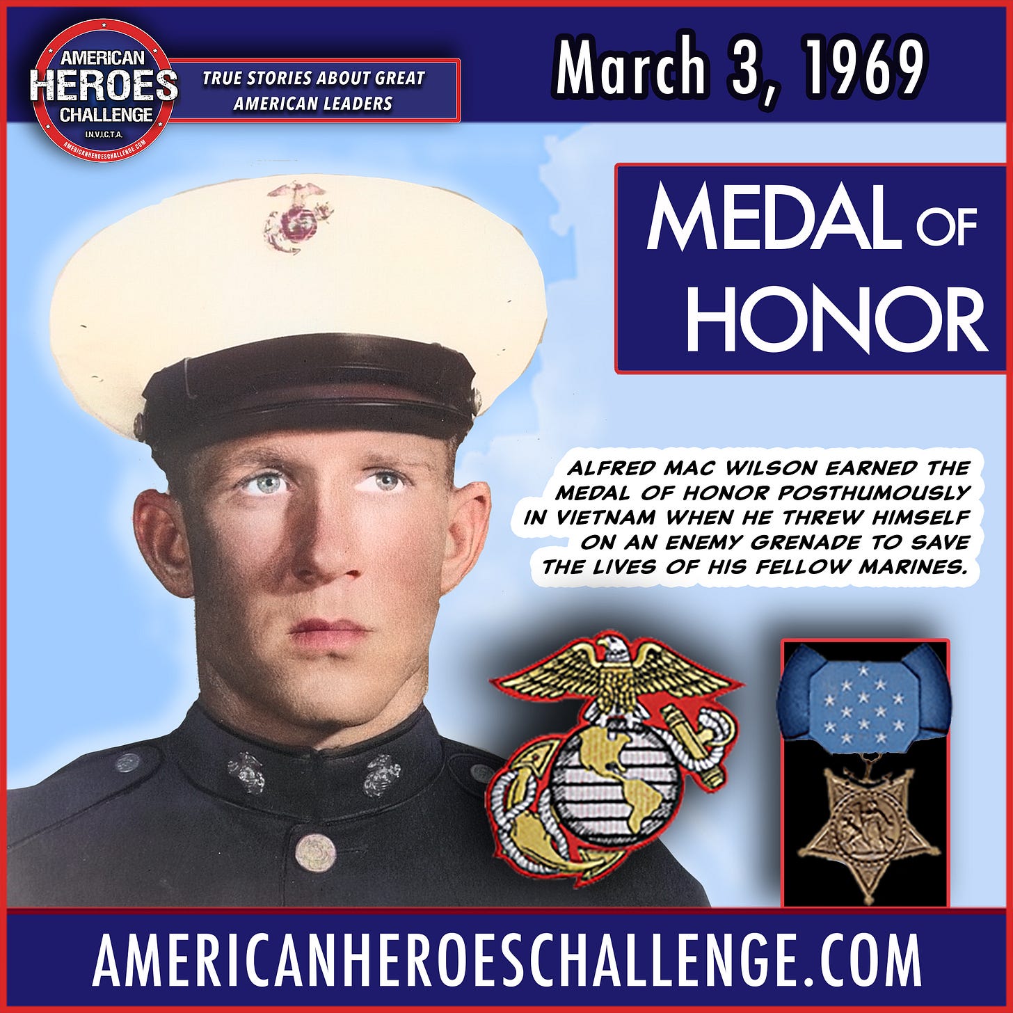 Then came the ultimate test of courage. A North Vietnamese grenade landed between him and another Marine. Without a second thought, Wilson threw himself on it, sacrificing his own life to save his brothers-in-arms.