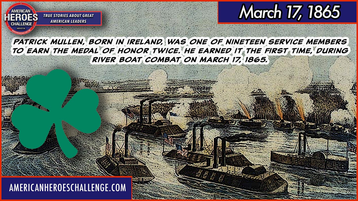 Nineteen Americans Earned The Medal of Honor TwicePatrick Mullen, A Son of IrelandJF MurphyMar 17, 2025SharePatrick Mullen, born in Ireland, was one of nineteen service members to earn the Medal of Honor twice. He earned it the first time, during river boat combat on March 17, 1865. Honor and remember him!PreviousNext